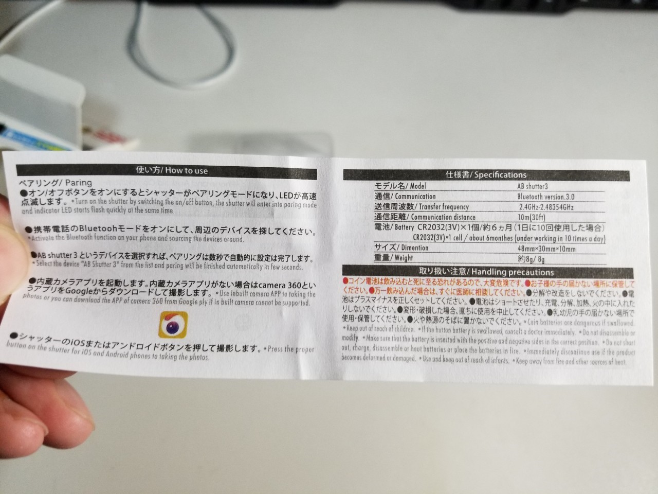 ペアリングは、難なく終了し、説明書にあったアプリのインストールが面倒だったので、そのままカメラを起動し、ボタンを押すと使えました。