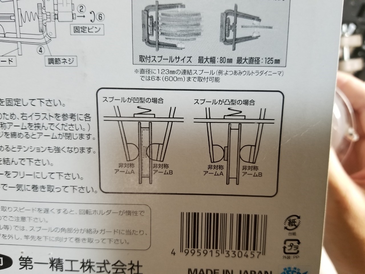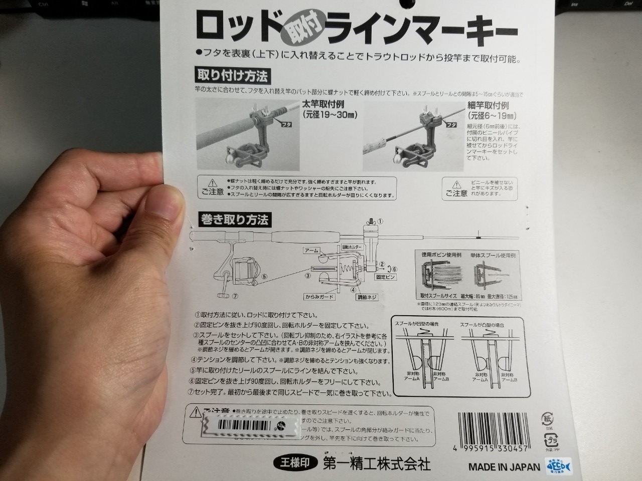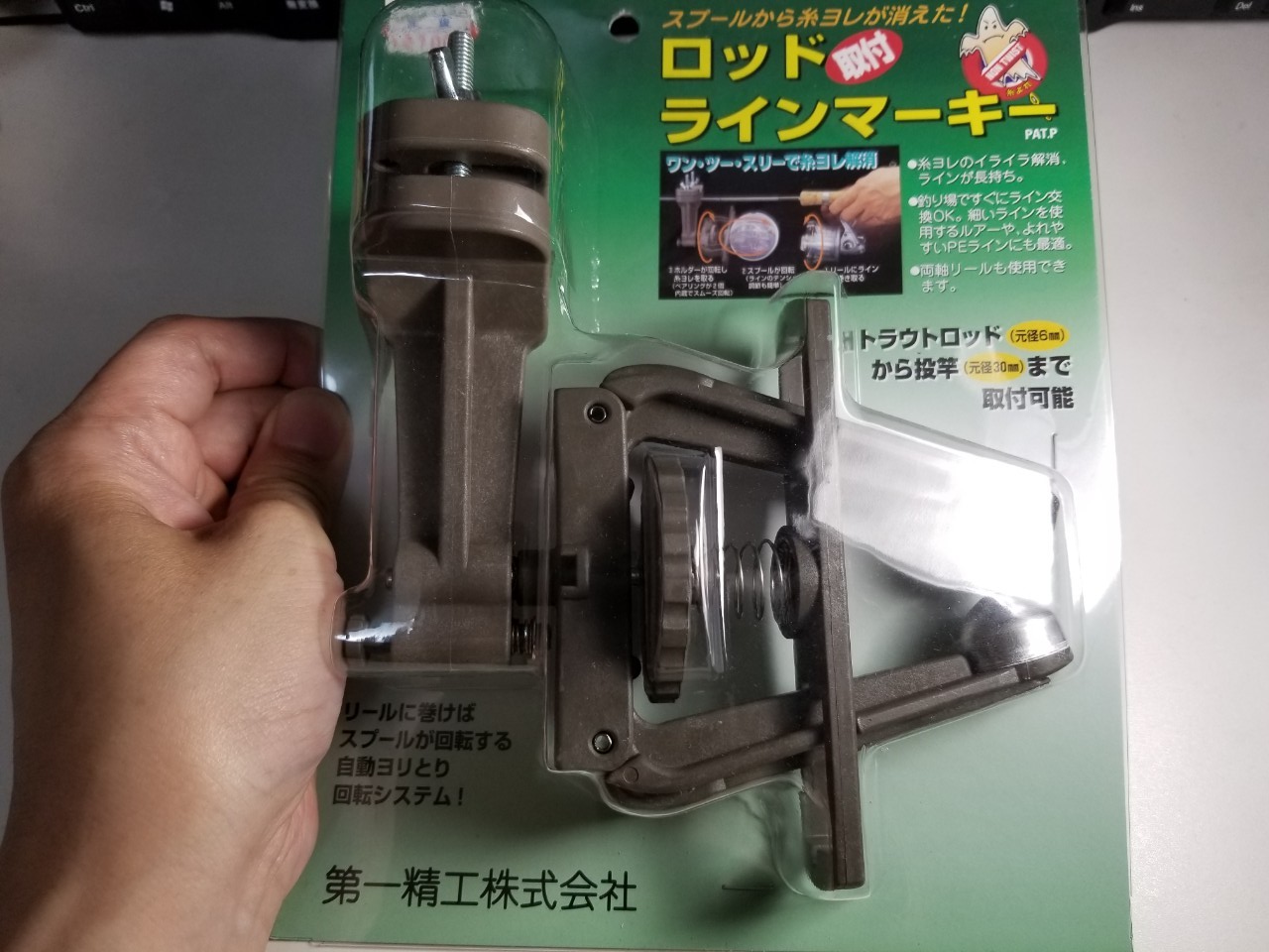 ↓今回、購入した糸巻き機は、第一精工株式会社さんの「ロッド取付ラインマーキー」という商品です。