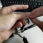 ↓糸をセットすしますが、クルクルまわってしまい、取り付けづらいです。